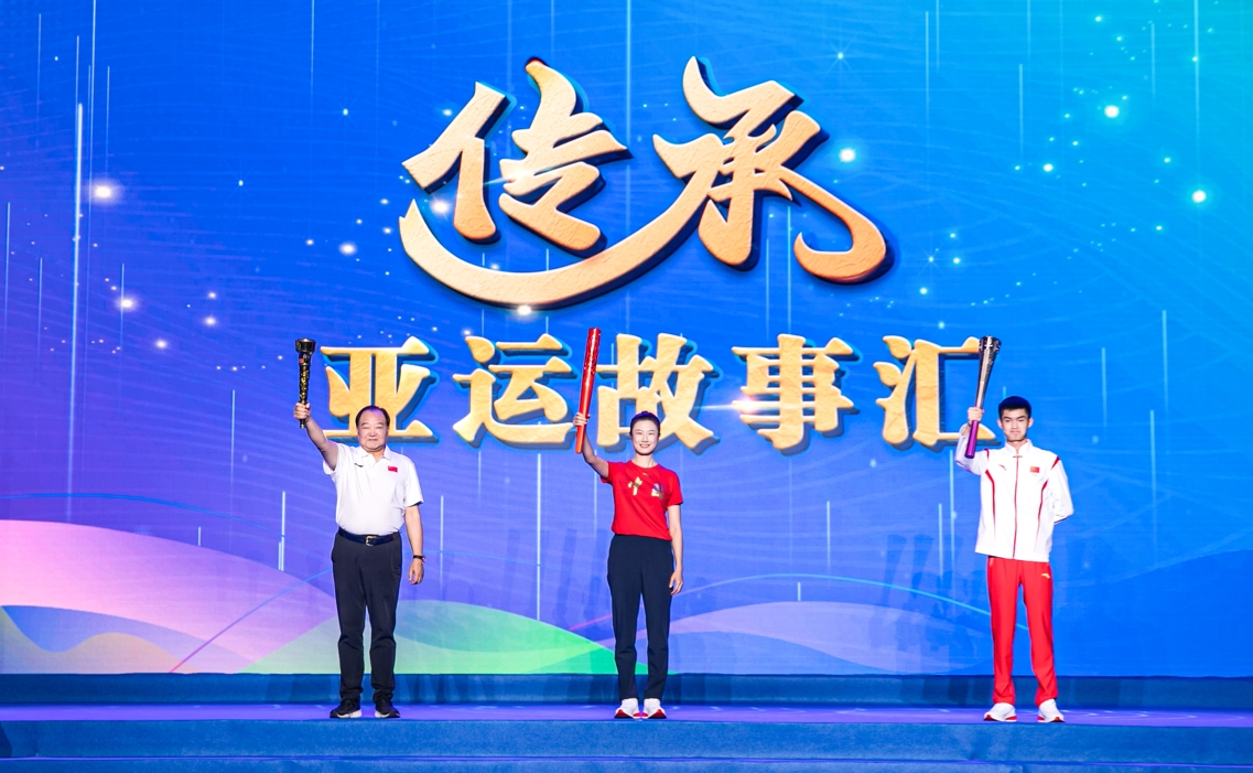 “传承—亚运故事汇”活动是“中华体育精神颂”杭州亚运站的重要内容。本次活动以北京、广州、杭州三届亚运会亲历者讲述和访谈为主要形式,用亚运火炬跨越33年,连接三座举办城市。在访谈环节,我国奥运首金得主、北京亚运会主火炬手许海峰,乒乓球大满贯得主、广州亚运会乒乓球女子团体金牌获得者丁宁,杭州亚运会射击男子10米气步枪金牌、射击混合团体10米气步枪金牌得主盛李豪分享了各自运动生涯的难忘时刻,用自己的赛场经历诠释了对中华体育精神的理解,激励广大运动员在新时代新征程上用拼搏奋斗实现出彩人生。