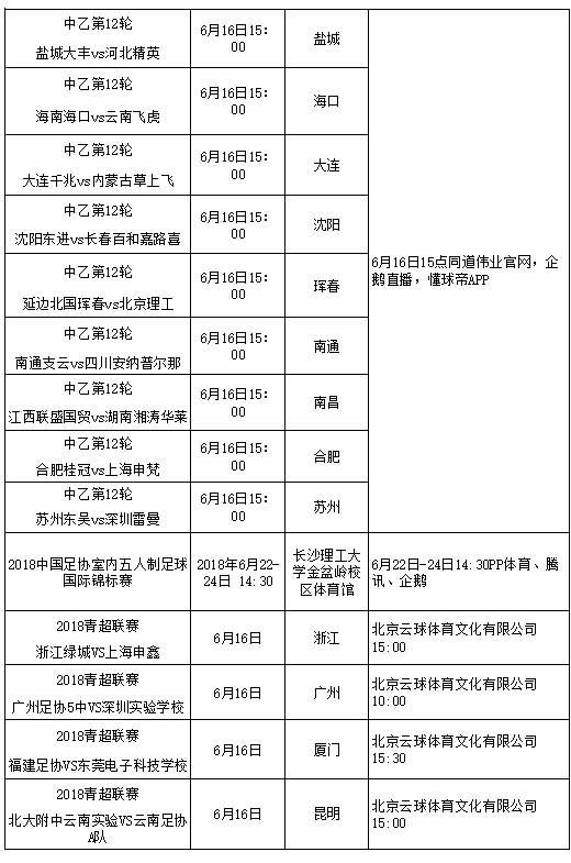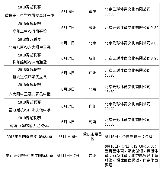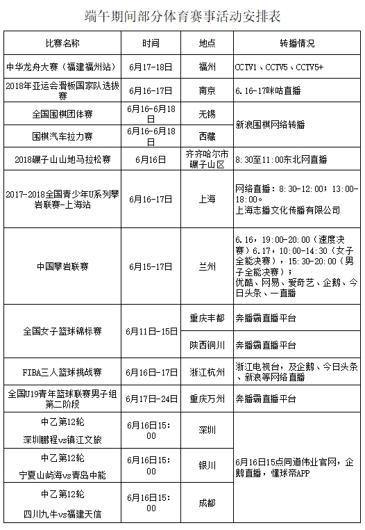 附:端午期间部分体育赛事活动安排表
