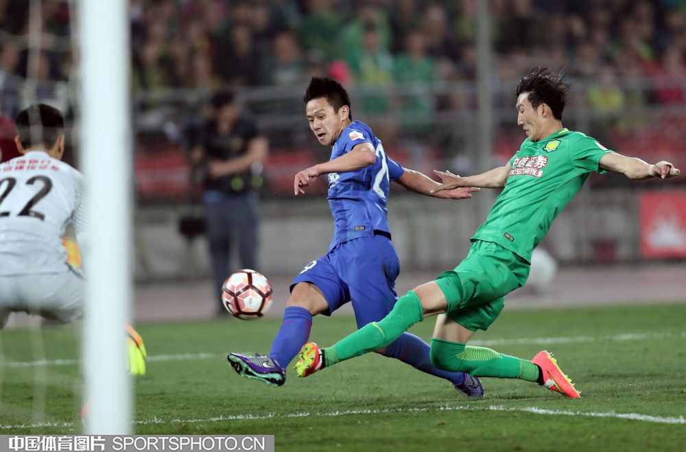 资料图:徐骏敏(蓝衣)与对方球员拼抢