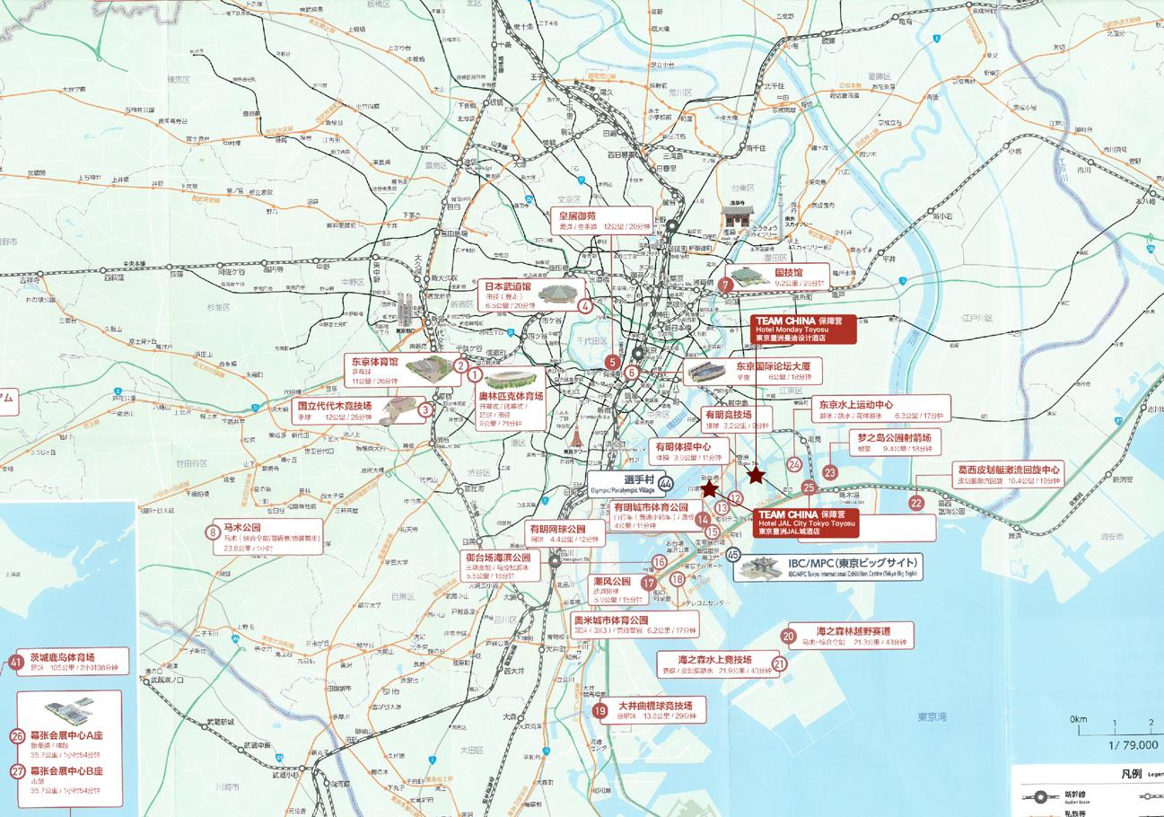 根据前几次考察及走访收集信息,这次考察缩小范围、调整思路、保证重点,团组兵分两路对奥运村及国立竞技场、武藏野羽毛球馆、幕张国际会议中心、海之森水上运动基地、朝霞射击运动中心、伊豆自行车分村等主要赛场及其周边酒店和训练场地资源进行了全面认真考察和信息收集。2019年5月,根据大量的实际路线行驶和对比测算以及其后保障营相关场地的确认结果,工作组翻译制作了第一张中文版东京赛场(含保障营位置)分布图,一直沿用至奥运会期间。
