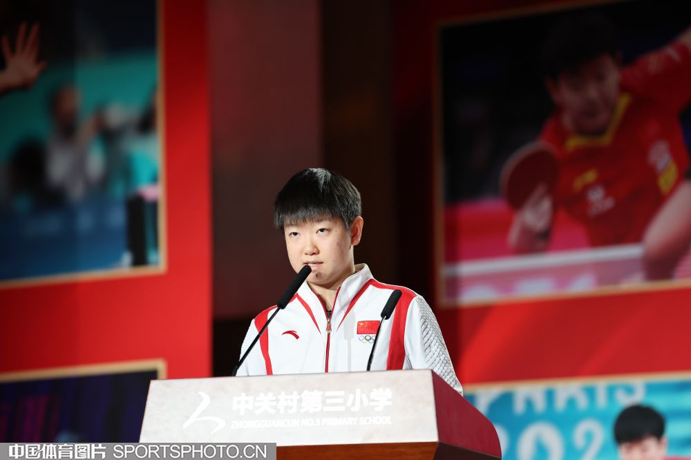 孙颖莎收到的那幅字上面写着“梦想成长幸福”。她说:“这幅字写得特别好,是把我演讲里的关键词写下来送给我,非常触动我,让我有了更大的前进动力,希望成为他们更好的榜样。非常开心能和小朋友们互动交流。他们认真的学习态度,对于自己喜欢的事情的坚持以及对体育的热爱,都非常打动我。这是非常好的活动,非常有意义。”