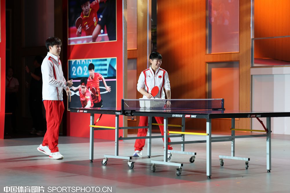 现场互动环节自然少不了乒乓球有关的切磋交流。王楚钦、孙颖莎分别讲解了正手、反手挥拍的动作要领,还“解密”了混双比赛中两人沟通战术时手势的含义。现场随机抽取出的30名学生,每个人都是兴高采烈地跑到台上,期待着和两位奥运冠军面对面交流。王楚钦拿着手机、孙颖莎拿着锅铲和学生们展开了趣味颠球比拼。随后他们还与学生们隔网对抗。一名学生把球直接打进了球筐,王楚钦笑着竖起大拇指点赞,幽默的风格使这堂特殊的体育课变得更加生动有趣。
