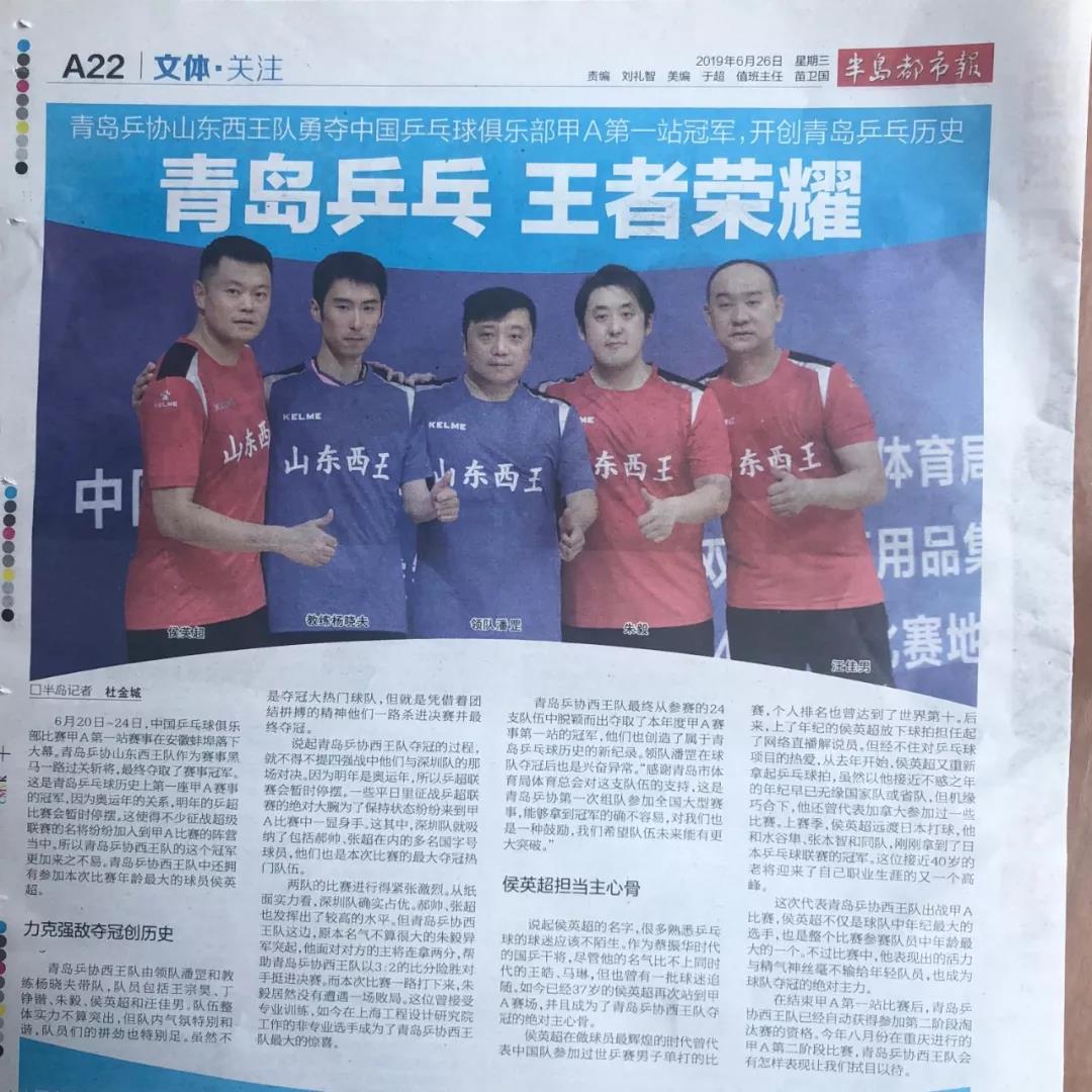就在今年6月底,乒乓球甲A第一站比赛决出冠军,青岛乒协山东西王队成为名副其实的黑马。这支队伍从组建征战甲B,到冲A成功,再到甲A首站夺冠,总共只用了一年半时间。在这前前后后,领队潘罡付出了多少努力,圈内人都看在眼里。