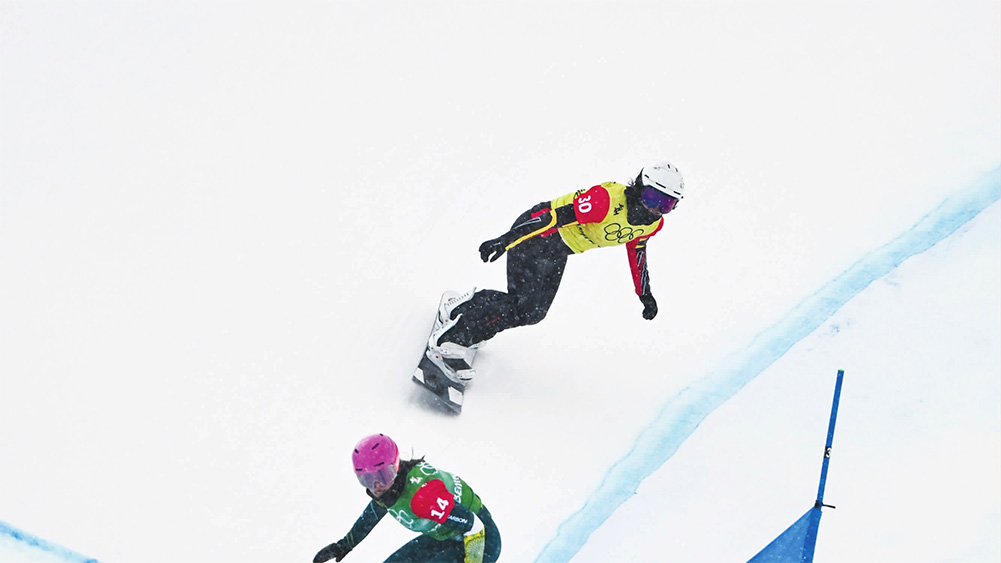 单板滑雪障碍追逐比赛是一项勇敢者的运动。北京冬奥会该项目的起点海拔为2043米,终点海拔为1888米,垂直落差达到155米。在长达1310米的赛道上,选手们要在几十秒的时间里,风驰电掣般滑完全程。年仅17岁的冯贺说,比赛需要克服的不仅仅是一道道肉眼可见的物理障碍,还要克服心理障碍。作为北京冬奥会单板滑雪女子障碍追逐比赛中年纪最小的参赛选手,第一次登上冬奥舞台的冯贺不仅战胜了自己,还成功征服了一道道障碍,让自己变得更加勇敢。