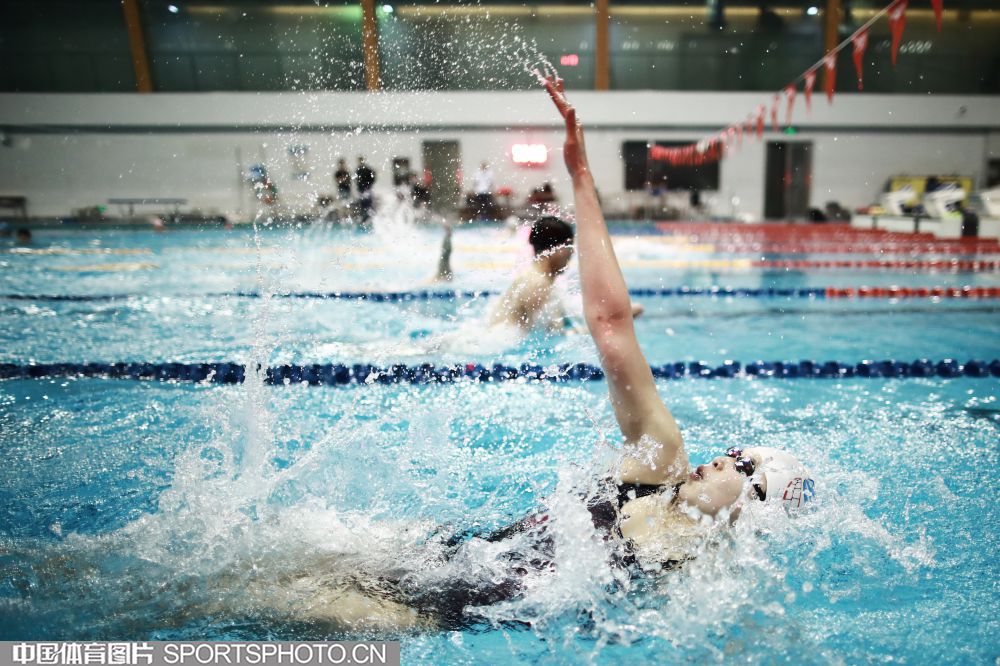 2019年4月3日,国家游泳队部分运动员在国家体育总局训练局游泳馆训练,备战2019年在韩国举行的光州游泳世锦赛。图为艾衍含。