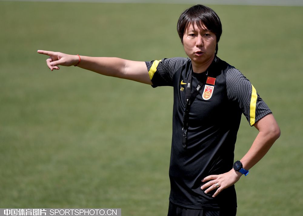 2020年5月13日,中国国家男子足球队在上海备战2022年卡塔尔世界杯亚洲区预选赛预赛阶段(四十强赛)。图为中国国家男子足球队主教练李铁指导队员训练。(中国体育图片 倪敏哲 摄)