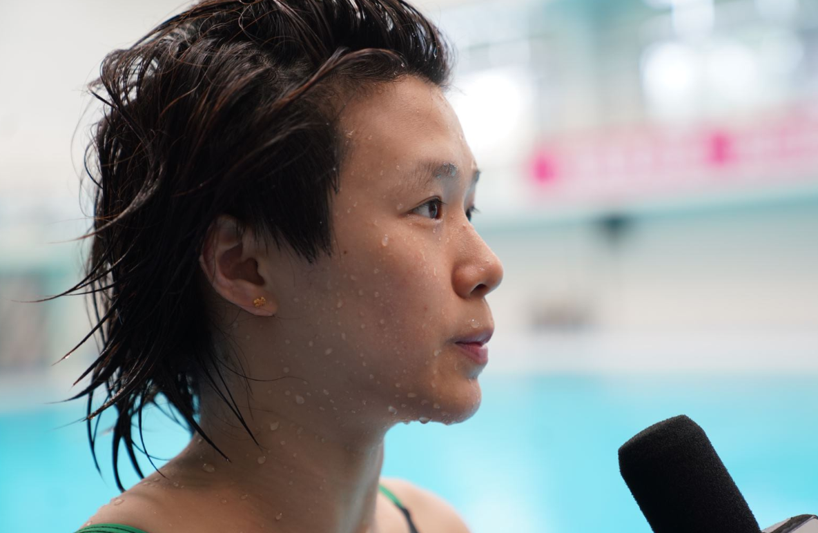 5月22日,2020年中国跳水冠军达标赛第3站来到第二比赛日,当日进行了男女10米跳台及3米跳板预赛,图为施廷懋接受采访。(新体育网 刘霁 摄)