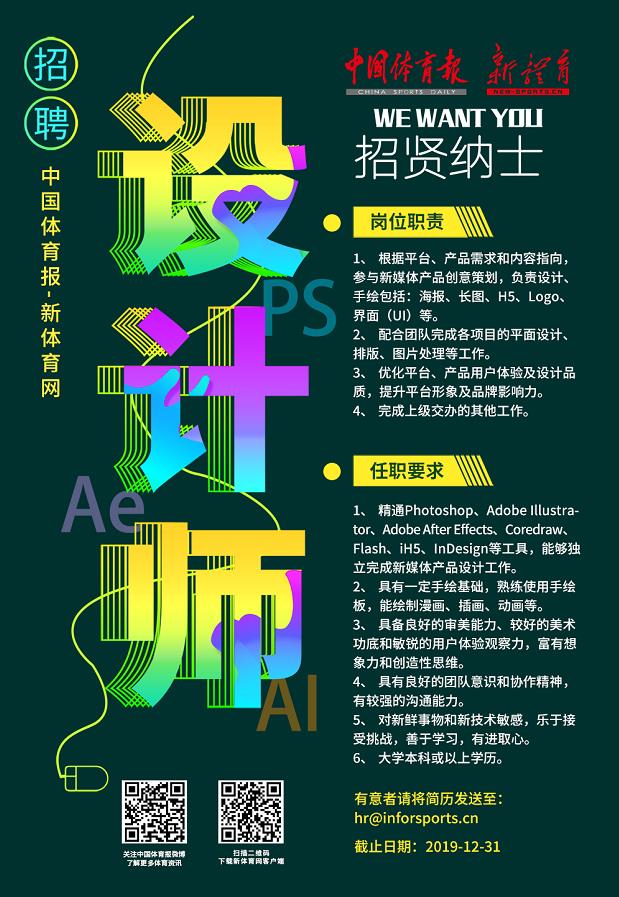 一年四季,与你相遇在冬季。中国体育报、新体育网舆情分析师、设计师招聘火热进行中,在中国体育传媒的“梦之队”,我们期待与你不平凡的相遇。