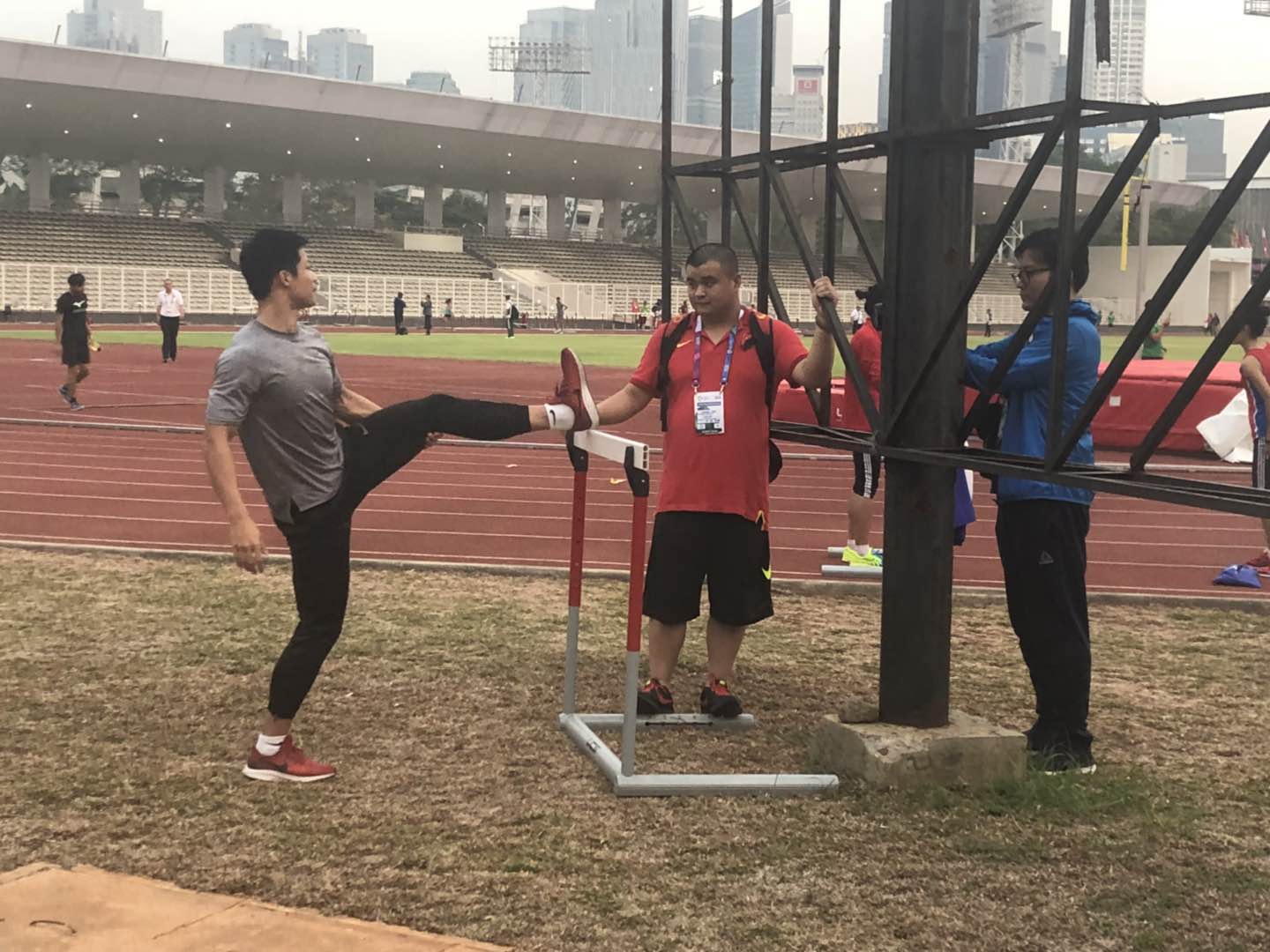 现场︱苏炳添在雅加达亚运会田径训练场地训练