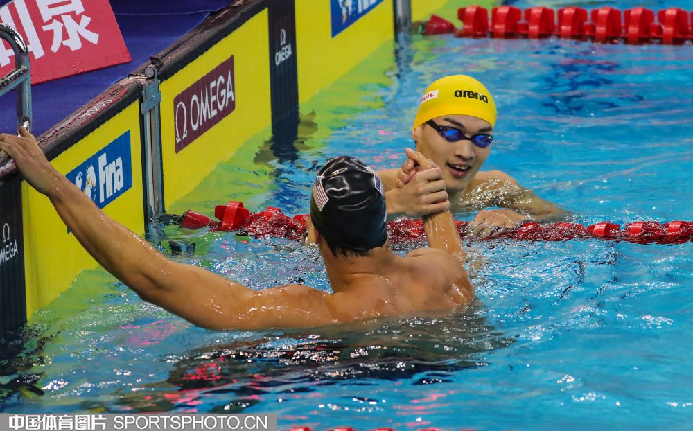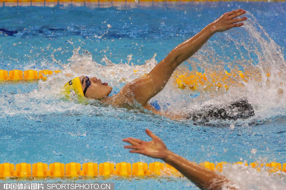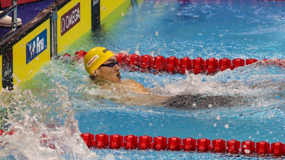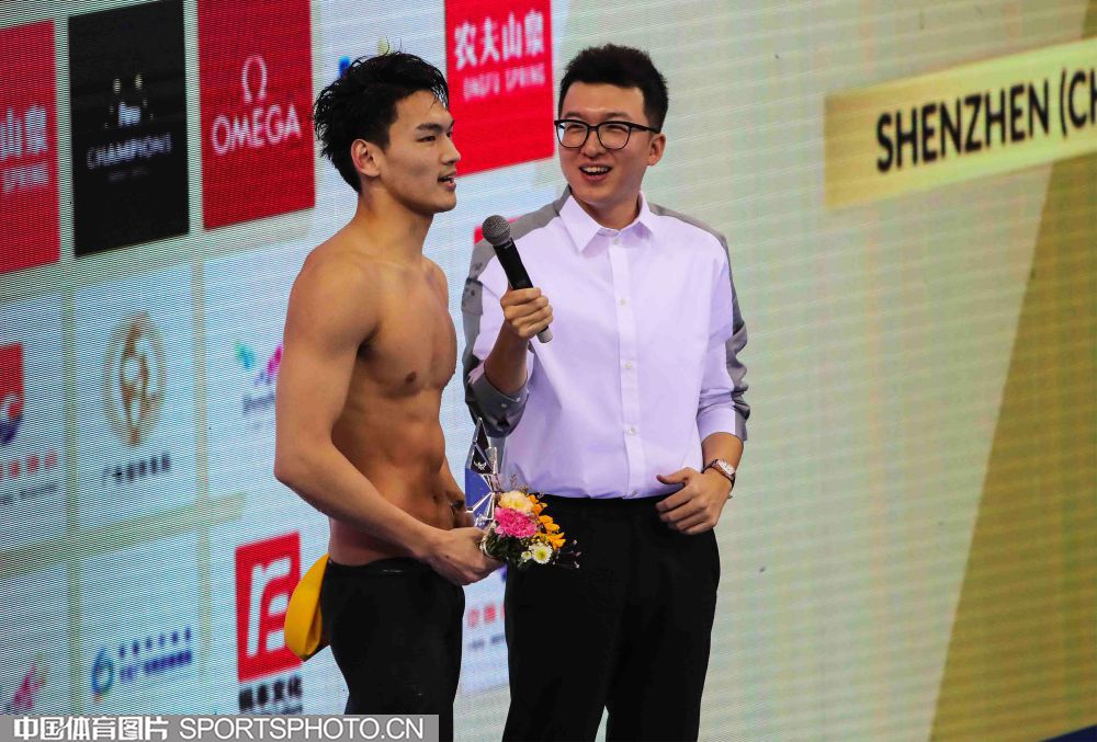 2020年1月14日,国际泳联(FINA)冠军系列赛深圳站在深圳大运中心游泳馆开赛。在男子100米仰泳比赛中,中国选手徐嘉余以53秒01的成绩夺得冠军。图为徐嘉余在比赛中。(中国体育图片 黄志 摄)